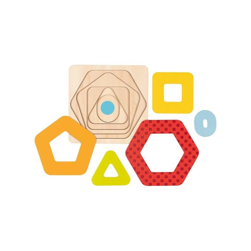 Każda kolejna warstwa układanki to inna figura, inny kolor czy inny rozmiar. Zadaniem dziecka jest dopasowanie poszczególnych kształtów do odpowiedniej warstwy układanki. Dzięki temu dziecko ćwiczy nie tylko spostrzegawczość i koordynację ręka-oko przy układaniu poszczególnych warstw, ale również pojęcie mniejszy-większy i dostrzeganie zależności pomiędzy układanymi obrazkami.
