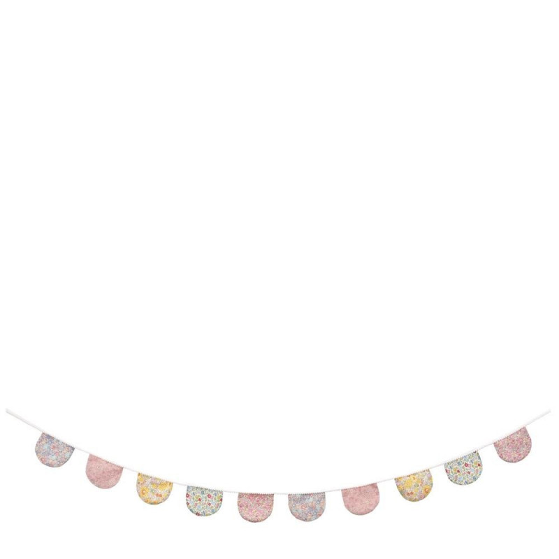 Girlanda ozdobna. Posiada 10 materiałowych zawieszek - z jednej strony kwiatowe wzory, z drugiej strony gładkie kolory. Długość: 2,44 m. Wymiary opakowania (woreczka): 15,2 x 12,7 x 2,5 cm.