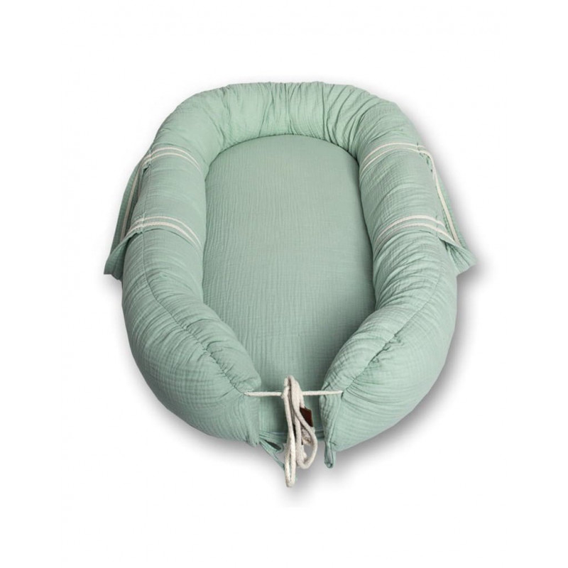 Ergonomiczny i bezpieczny kokon-gniazdko dla Noworodka z oddychającej, wysokojakościowej bawełny muślinowej OEKO-TEX 100.