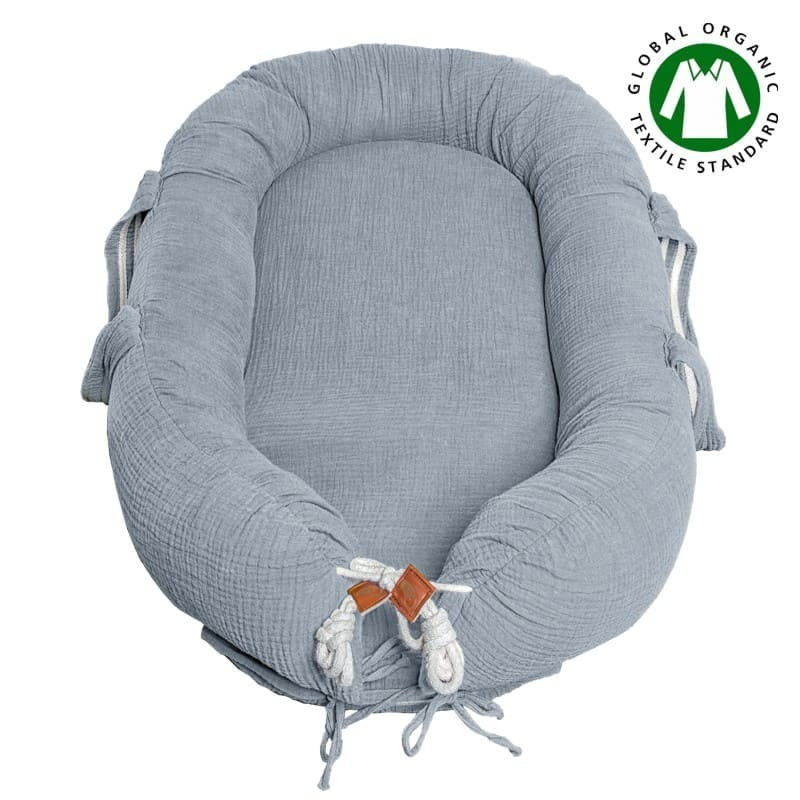 Ergonomiczny i bezpieczny kokon-gniazdko dla Noworodka z oddychającej, wysokojakościowej bawełny muślinowej OEKO-TEX 100.