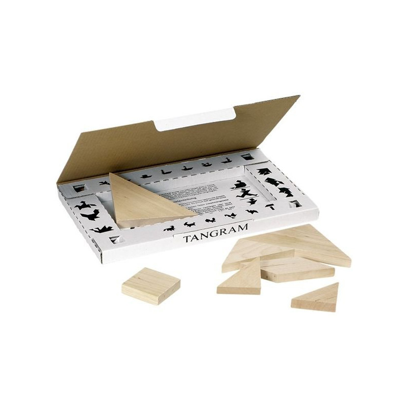 Tangram jest chińską układanką. Ta gra logiczna polega na ułożeniu figur z znajdujących się w zestawie elementów. Należy wykorzystać je wszystkie i muszą one do siebie przylegać. Zabronione jest nakładanie klocków na inne. Na dołączonym opakowaniu znajdują się ilustracje aż 25 różnych wzorów, ale możliwości układania są niemal nieograniczone. Dzięki temu gra pobudza wyobraźnię, rozwija kreatywność oraz postrzeganie przestrzenne. W skład zestawu wchodzi 5 trójkątów o różnych rozmiarach, kwadrat oraz równoległobok. Dedykowana jest dla dzieci powyżej 4 roku życia.