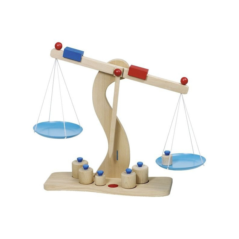 Waga szalkowa jest zabawką w całości wykonaną z drewna. Do zestawy dołączone są specjalne odważniki, a na ramionach umieszczone są kolorowe, ruchome ciężarki, które pozwalają na dokładniejsze tarowanie i odmierzanie wagi. Szalki są wykonane z metalu i wiszą na sznurkach. Zabawka rozwija logiczne myślenie oraz polepsza koncentrację dziecka. Będzie idealnym uzupełnieniem kolekcji, służącej do zabawy w sklep.