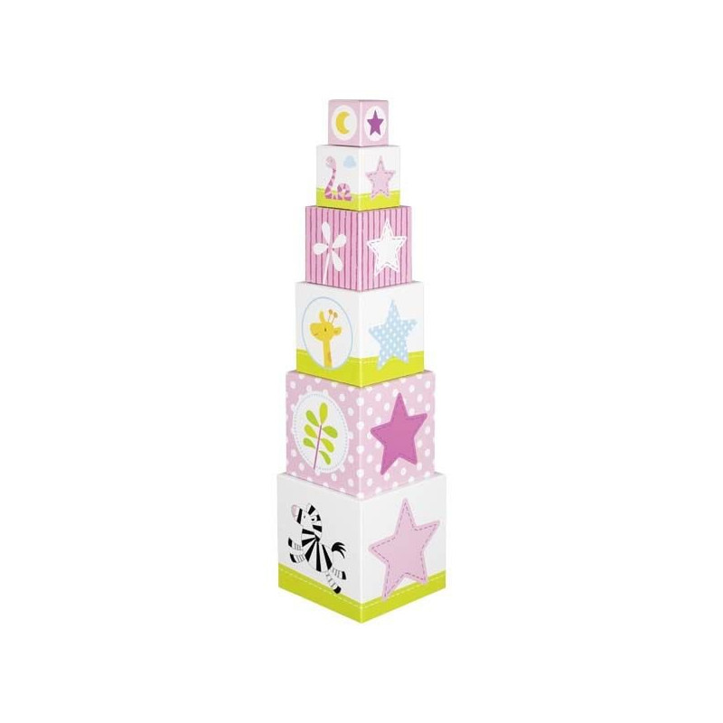 Układanie wieży z kostek o różnej wielkości to idealna zabawa rozwojowa dla dzieci, które ukończyły pierwszy rok życia.