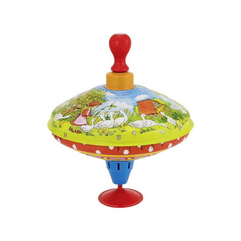 Metalowy bączek do kręcenia posiada ilustrację Małej Gęsiareczki, która wypasa swoje gąski. Poprzez naciśnięcie górnego drążka zabawka zaczyna wirować, a kolory zlewają się w wir różnych kolorów. Dodatkowo z bączka wydobywa się specyficzny dźwięk. Umieszczony jest on na specjalnej podstawie, dzięki czemu nie przewraca się on podczas kręcenia. Zabawka dedykowana jest dla dzieci powyżej 12 miesiąca życia.