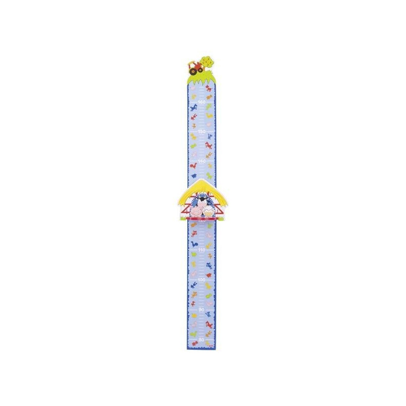 Drewniana miarka Goki pozwala na szybkie i łatwe zmierzenie wzrostu dziecka. Wystarczy, że maluch stanie koło miarki, a rodzic ruchomym wskaźnikiem zaznaczy jego wzrost i gotowe! Miarka ma motyw farmy, a wskaźnik przypomina stodołę z otwieranym pomostem. Po jego otwarciu pokazują się trzy wesołe zwierzaki. Miarka jest zatem nie tylko praktyczna, ale i będzie stanowić dekorację pokoju dziecięcego.