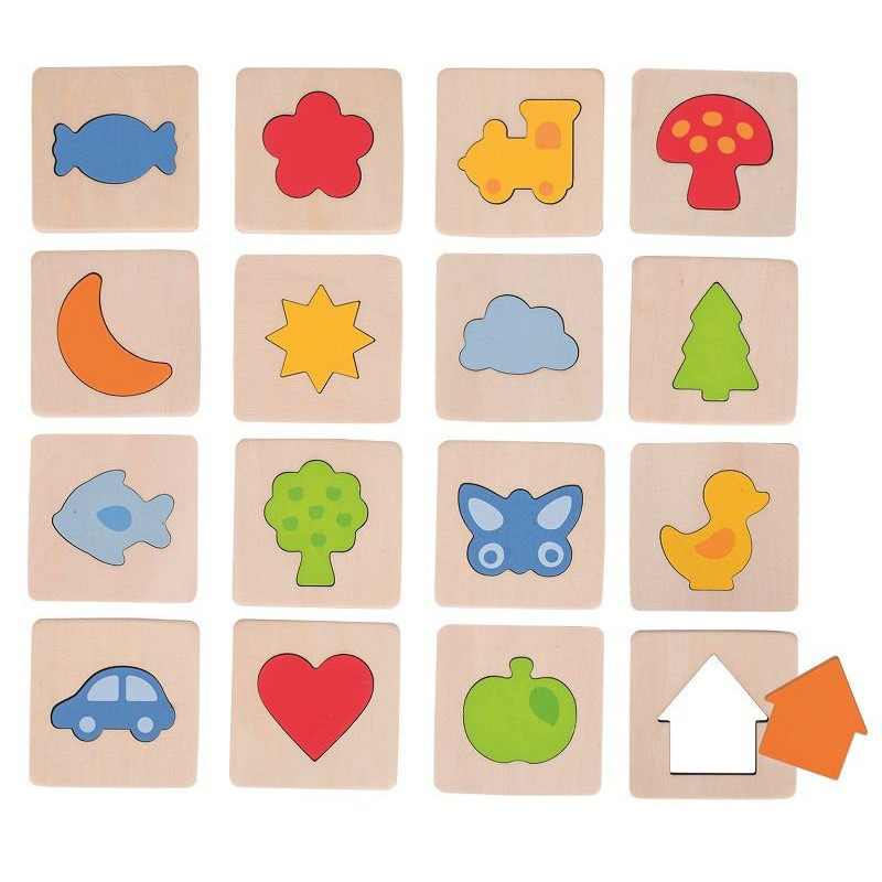 Gra memory jest doskonałą zabawą dla całej rodziny i świetnym sposobem na naukę dziecka cierpliwości, kojarzenia oraz motoryki. Zabawka Memo Dotykowe Kształty różni się jednak nieco pod względem zasad gry. Każda para posiada kwadratowy element z wyciętym kształtem. Zadanie polega na tym żeby dobrać do tego otworu drugi klocek, którego szuka się za pomocą dotyku w dołączonym materiałowym woreczku – służy on również do przechowywania wszystkich elementów. W przypadku pomyłki klocek wraca do woreczka i zostaje on przekazany kolejnej osobie. W zestawie znajduje się 16 par, czyli aż 32 drewniane elementy. Dedykowana jest dla dzieci powyżej 3 roku życia.