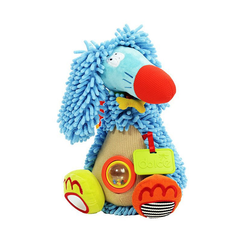 Nasz wspaniały Pies Afgański wykonany jest z pięknej, miękkiej tkaniny teksturowanej i zawiera wiele atrakcji dla dzieci. Posiada lusterko, piszczałkę, gryzak Dolce i grzechotkę z wirującą kuleczką w swoim brzuszku. Idealny przyjaciel do zabawy i nauki na wiele godzin. Rozwija umiejętności motoryczne dziecka.