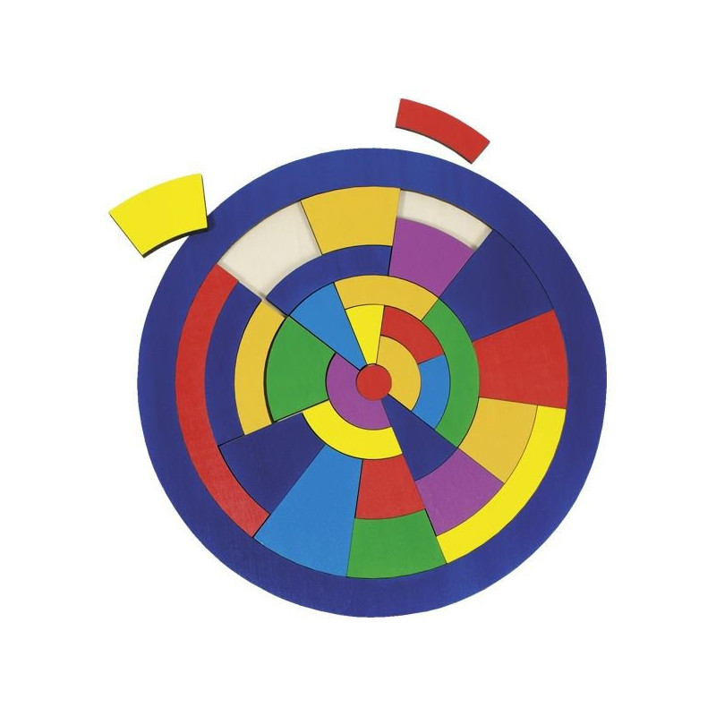 Firma Goki przygotowała dla dzieci nową odsłonę puzzli, która posiada okrągłą formę. Zabawka składa się z 29 elementów w różnych kolorach i kształtach, dlatego też ich ułożenie wcale nie jest takie proste. Wszystkie puzzle muszą zmieścić się na dołączonej podstawie. Zabawa nimi jest doskonałym sposobem na rozwijanie koncentracji i logicznego myślenia. Dedykowana jest dla dzieci powyżej 4 roku życia.