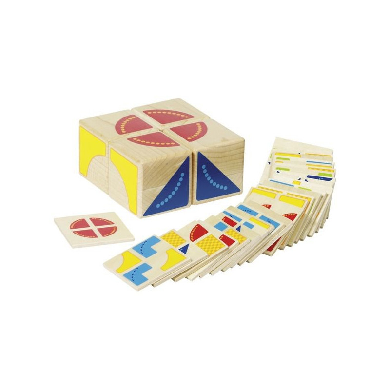 Układanka sześcienna uczy dziecko logicznego myślenia oraz kojarzenia faktów. Jest to kreatywny zestaw, który zapewni ciekawą zabawę. Zestaw składa się z 4 klocków w kształcie kostki oraz 26 tabliczek z wzorami. Głównym zadaniem dziecka jest odwzorowanie wzoru umieszczonego na nich. Klocki należy obracać do tego momentu aż natrafi się na właściwą ilustrację. Każdy element wykonany jest z drewna, a do zestawu dołączone jest kartonowe pudełeczko, które może posłużyć do przechowywania. Zabawka dedykowana jest dla dzieci powyżej 3 roku życia. Opis szczegółowy: