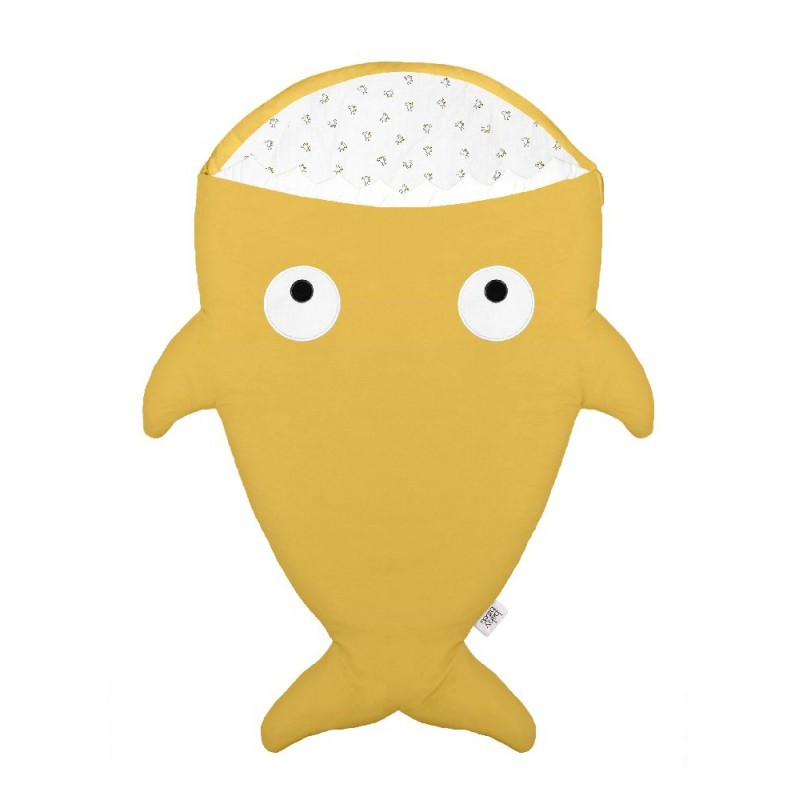 Oryginalny śpiworek Shark, w uroczym kształcie rybki, dla dzieci od 1 do 18 miesiąca, wyprodukowany w Hiszpanii z materiałów najwyższej jakości. Zimowy śpiworek ma cieplutkie wypełnienie, odpowiednie do chłodniejszych pomieszczeń (temperatura otoczenia poniżej 16°C) Śpiworek Shark od Baby Bites może być używany w łóżeczku, w kołysce i w wózku dziecięcym.