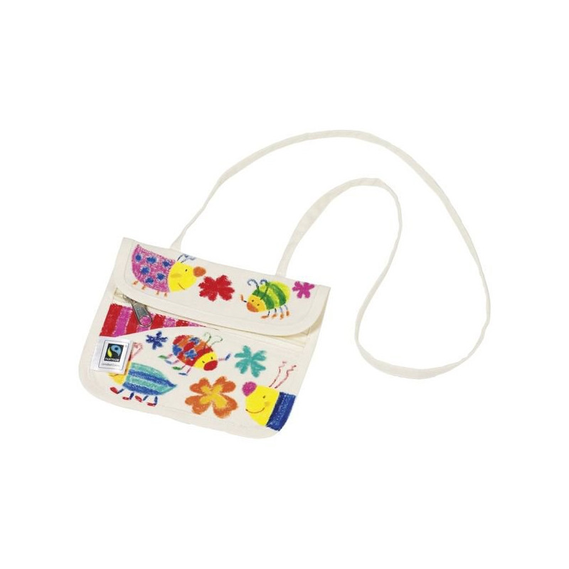 Torebka-listonoszka do pokolorowania pozwala dziecku na zaprojektowanie swojej niepowtarzalnej torby. Jest doskonałym pomysłem na kreatywną i rozwijającą zabawę. Wykonana z ekologicznego materiału bawełnianego, który został wyprodukowany z poszanowaniem środowiska naturalnego. Nie jest chemicznie wybielana, dlatego torba ma kolor bardziej kremowy niż biały. Zamykana na zamek oraz rzep, posiada małą kieszonkę z przodu. Do zestawu należy dokupić kredki do tkanin, dzięki którym dziecko może wykonać własne rysunki. Torba dedykowana jest dla dzieci od 3. roku życia.