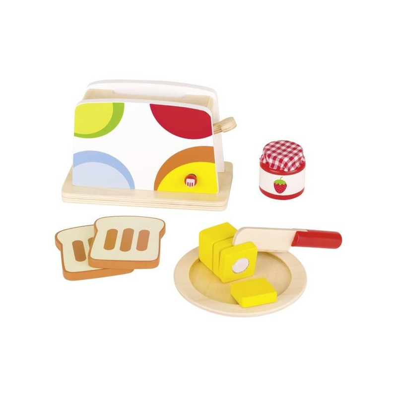 Kolorowy toster stanowi doskonałe uzupełnienie zabawkowego sprzętu kuchennego oraz jest niezbędnym elementem do wykonania „śniadania kontynentalnego”. Po naciśnięciu czerwonego guzika włożone do specjalnych otworów tosty wyskakują - dzieje się tak poprzez wykorzystanie specjalnego mechanizmu na sprężynie. Każdy element zachowany jest w pięknej kolorystyce, która pasuje zarówno dla chłopca, jak i dziewczynki. Zabawka dedykowana jest dla dzieci powyżej 3 roku życia.