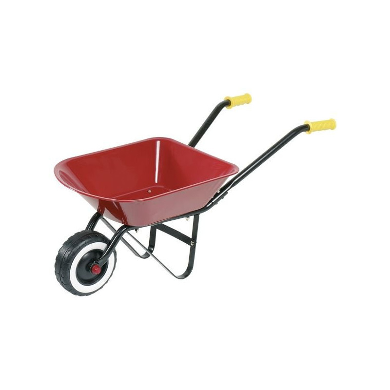 Taczka dla dzieci wykonana jest z metalu i posiada gumowe koło. Będzie ona doskonałym prezentem dla małego pomocnika. Dziecko będzie mogło pomóc rodzicom podczas pracy w ogródku. Taczka umożliwia również łatwy transport zabawek - wyposażona jest w wygodne uchwyty, dzięki którym pchanie nie sprawia problemu. Sprawdzona, dobra zabawka, odpowiednia dla dzieci powyżej 2 roku życia.Wymiary:
